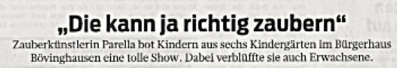 Kontakt: Zauberin Parella - Dortmund 0231 / 105263 - E-Mail: Parella-Zauber@online.de - www.parella.de
